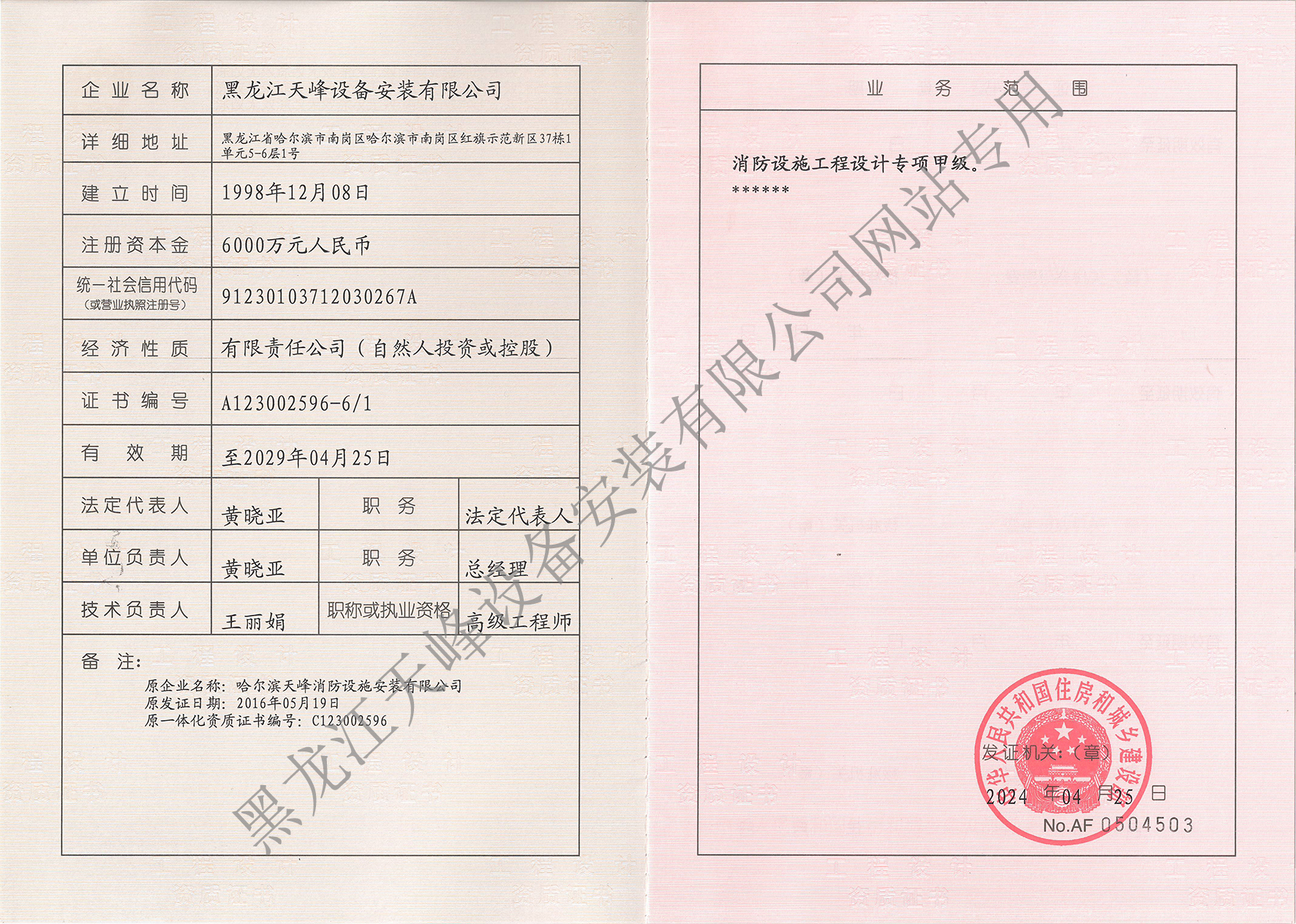 消防设施工程设计专项甲级